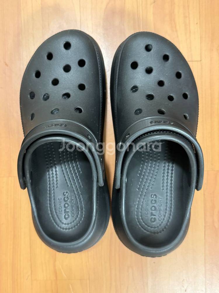 크록스 크러쉬클로그 240사이즈 블랙 3번정도 신었고 깨끗합니다! 크록스 공식온라인 사이트에서 구매했습니다