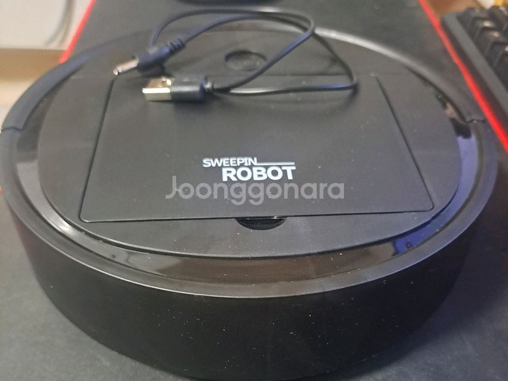 USB충전식 로봇 청소기 : 1회 사용 후 깨끗히 닦아 놓은 상태. 지름/높이 21/5cm. 저가품이다 보니 기동성이 뛰어나거나 아주 똑똑하진 않고 바닦이 말끔해질 아주 강력한 흡입력까진 아니고 털이나 작은 것들에는 나름 쓸만해서 바닥이 평평하고 장애물이 없는 작은 방에 사용 추천.