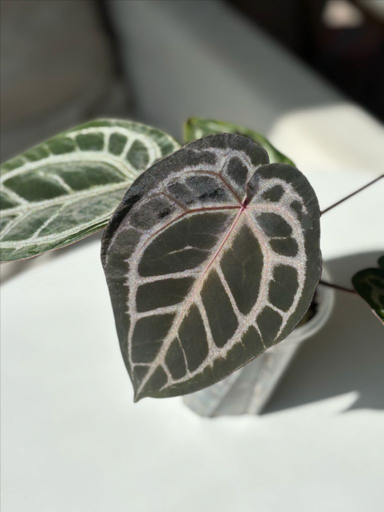안스리움 퍼플크리스탈리넘 셀렉개체입니다. 컷팅안한 묘이며, 사이즈작지않아요. 다크하고 퍼플색감 아주 좋아요. 첫번째사진 신엽이 커져 사진업데이트했어요. 분양가29만원 택배5천원추가