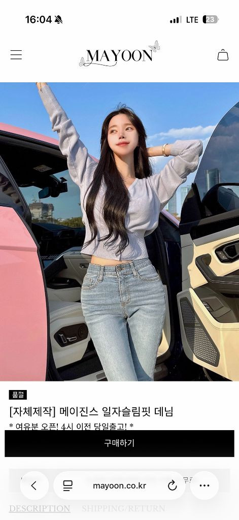 슬림핏 디자인의 일자 데님입니다. 이쁜데 저한테는 너무 작아요. . 어떤 상의에도 잘 어울려서 데일리룩으로 활용하기 좋습니다! 자세한건 사이트에서 확인 부탁드려요 https://mayoon.co.kr/product/자체제작-메이진스-일자슬림핏-데님/222/