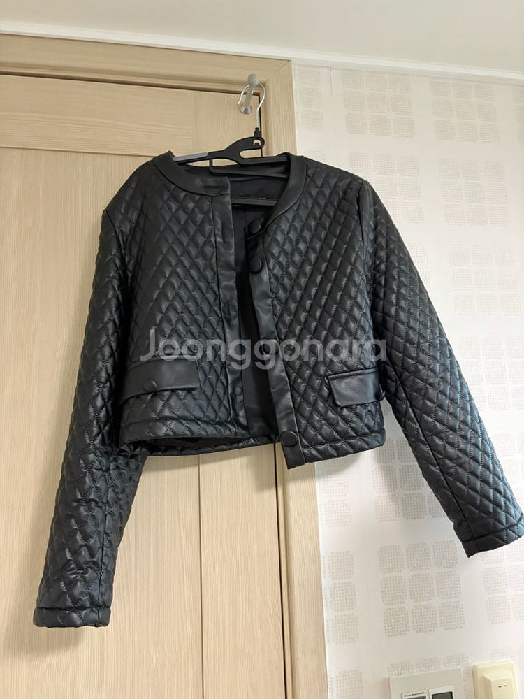 자라 퀄팅 크롭 자켓입니다 주머니는 없고 프랑스에서 구매했던 제품이에요 윗쪽에 가죽이염 조금 있습니다