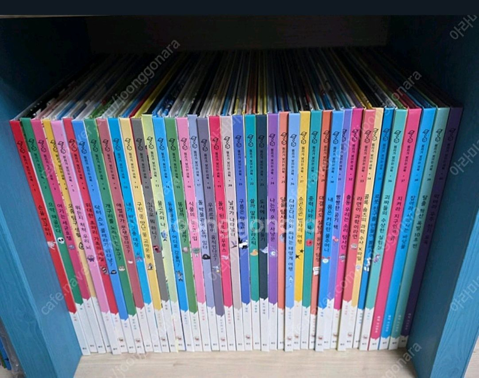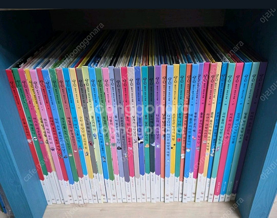 아동도서 시리즈 전집으로 다양한 색상의 책들이 깔끔하게 정리되어 있어요. 아이들 독서교육에 좋은 상태의 도서 세트입니다. 웅진 원리가 보이는 과학 본책 40권 3만 3천원 택배비 포함