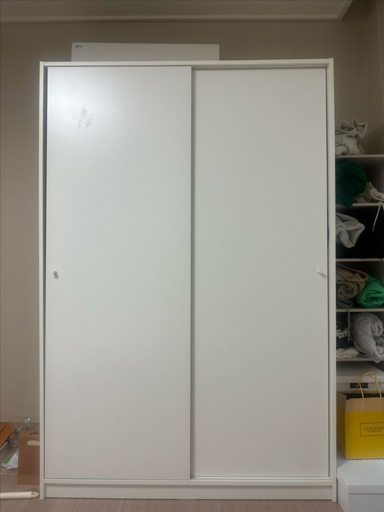 이케아 클레프스타드 슬라이딩 옷장 1년사용하고 이사로 인해 판매합니다 2월3일에 오전에 오시면 1층으로 내려드릴수있습니다 -화이트 색상으로 깔끔하고 미니멀한 디자인이라 어떤 인테리어에도 잘 어울려요 -가로 117cm, 높이 176cm, 깊이 55cm의 컴팩트한 규격으로 원룸이나 작은 방에도 배치하기 좋습니다 -문 여닫이 공간 확보가 필요 없는 슬라이딩 도어라 공간 활용에 용이해요