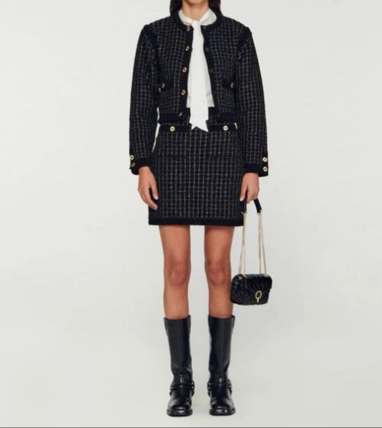 산드로 트위드 스커트 판매합니다. 여분 단추 포함되어있고 택있는 상품입니다. 40사이즈입니다. 니트나 블라우스에 입으면 포인트로 예쁩니다.^^ 개인간 거래로 교환, 환불 불가. 택배시 +4,000원 추가