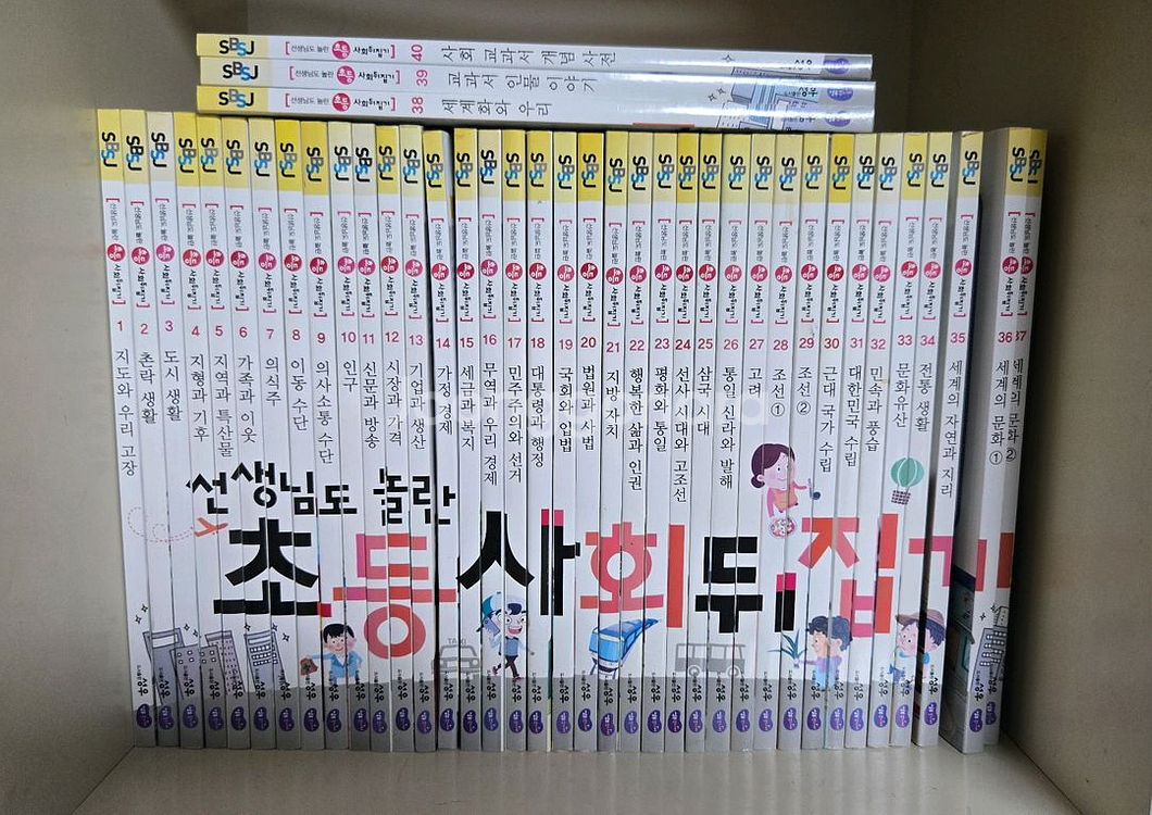 선생님도 놀란 초등 사회 뒤집기 전집 40권입니다 초등 사회 교과와 연계되어 아이들이 사회 개념을 쉽고 재미있게 학습할 수 있도록 돕는 책이에요. 정품등록 되어 있습니다. 직거래시 평촌동