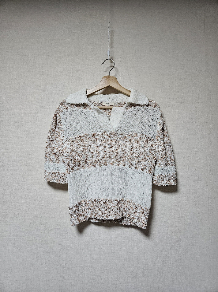 시스템 SYSTEM QC 샘플 글리터 니트 90사이즈 실측사이즈 가슴단면 45/ 뒤 기장 51 여성 90사이즈입니다 전체적으로 블링블링 글리터한 아이보리와 브라운 컬러의 얼기설기 짜임의 니트로 봄~초여름까지 괜찮은 정도 입체적인 짜임이고 겉면 살짝 까실한 재질감입니다 오픈칼라이고 얼기설기라 아이보리쪽은 비침 꽤 있는 편 QC 샘플 상품이라 저렴히 올려요 자연스러운 생활사용감 정도이며 눈에 띌만한 큰 하자 오염은 없는 양호한 컨디션 택배거래만 하고 택비는 추가입니다