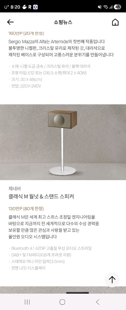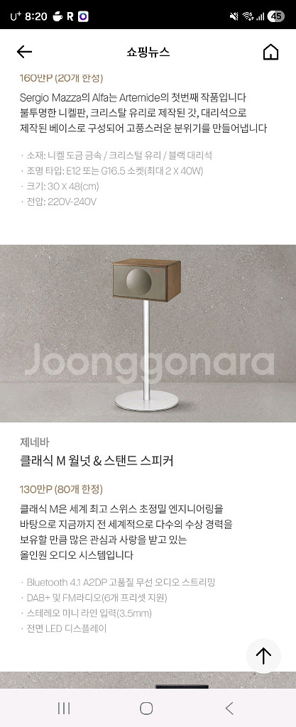 개인정보(거래정보)를 주고받는 행위는 사기에 노출될 수 있으므로 즉시 중고나라로 신고해 주세요제네바 m스피커 스탠드포함 구매하시면 신청예정이고 알려주신 주소로 백화점에서 직접 배송 수량이 정해져있어서 문의주시면 신청가능한지 먼저 확인후 구매가능해요 지금 잔여수량 52개로 뜹니다 010 삼하나61 하나76구