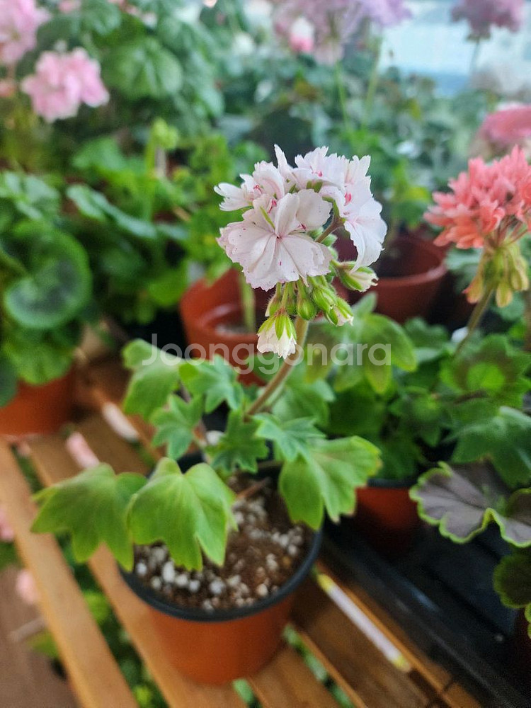 연분홍색 꽃을 피우는 스텔라제라늄 화분입니다. 곧 더 풍성해질 거예요. 건강하게 잘 자라고 있는 예쁜 제라늄입니다.