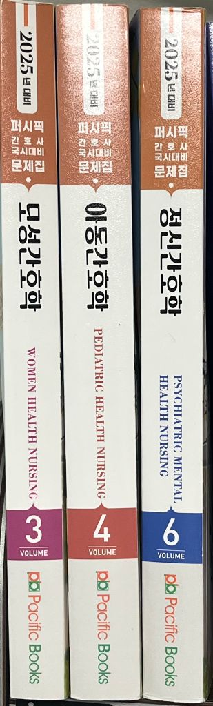 2025년 간호사 국시 대비 퍼시픽 문제집입니다. 여성, 아동, 정신있습니다. 모두 연필로 풀었습니다. 채점도 안 되어있습니다. 저렴하게 가져가세요. 권당 7천원입니다. 원가는 권당 2만원 넘어요 중고 서적입니다. 민감하신 분은 피해주세요:)