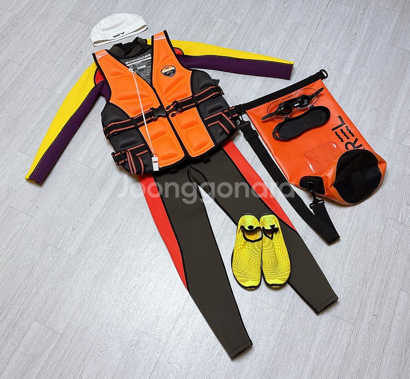 어린이 아동 키즈.올인원슈트.구명조끼.드라이백.아쿠아슈즈.수영모.수경.모두3회사용 [네오프렌 웻슈트 스윔 서핑 슈트] 2XL (키135~145cm) - 판매 완료 [SCHNEIDER] 어린이 아동 키즈 슈나이더 구명조끼 80kg 이하 사용 3회 착용 -> 18,000원 / 선명한 오렌지색으로 물놀이 시 눈에 잘 띄어 안전하게 사용하기 좋습니다. KC 인증을 받은 제품으로 안심하고 착용할 수 있습니다. 호루라기가 달려있어 위급 상황 시 유용하게 사용할 수 있습니다. [BARREL] 배럴 드라이 백 10리터 3회 사용 -> 18,000원 / 방수 기능이 있어 물놀이 갈 때 전자기기 등 보호 기능이 뛰어나며 튜브 대용으로 사용이 가능해 유용하게 사용할 수 있습니다. 하자는 없으나 보관상 뒷 부분에 약간의 이염 있습니다. [BALLOP] 어린이 아동 키즈 밸롭 아쿠아 슈즈 스파이더 옐로우 220 정사이즈 3회 착용 -> 18,000원 / 가볍고 편안한 착용감으로 발에 부담이 적고, 미끄럼 방지 밑창으로 안전하게 신을 수 있습니다. [arena] 어린이 아동 키즈 아레나 수영모와 수경 세트 3회 착용 -> 20,000원 / 수영모는 깨끗한 흰색이고, 수경은 블랙 색상에 노미러 렌즈입니다. 물속 시야가 밝고 선명합니다. 👣-•-•-•-•-•-•-•-•-•-•-•-•-•-•-•👣 ✎ 미개봉 미사용 새것 또는 A급 중고 상품 위주로 판매하며 하자 등 설명이 필요한 상품만 추가 설명 기재했습니다. ✎ 매너 거래, 쿨 거래 시 덤 또는 에누리 가능하며 교신, 타 사이트 유도, 카톡 거래 유도, 동영상 요청 등 비정상 거래 하지 않습니다. ✎ 계좌 도용, 피싱, 사기 등의 기승으로 현금 & 페이(pay) & 안전결제로 거래합니다. ✎ CU끼리택배, GS반값택배 > 2,000원 / 일반택배 > 4,000원 / 당일 발송을 원칙으로 하며 주말과 공휴일 제외 평균 1~3일 안에 배송이 완료됩니다. ✎ 직거래 > 상도3동 국사봉8길 40 / 약속을 어기는 구매자들이 있기에 구매자가 요청하는 장소로 이동하지 않습니다. ✎ 반품, 환불 불가하니 신중한 구매 바랍니다. 👣-•-•-•-•-•-•-•-•-•-•-•-•-•-•-•👣