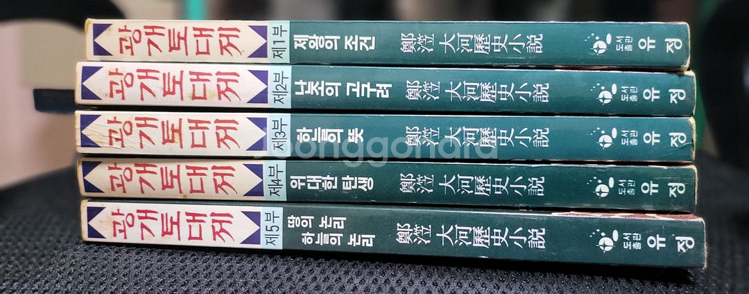 일괄가격입니다 광개토대제 정립 1~5권 세트 판매합니다 출판일 3번째 사진 참고 책이 오래되어 전체적으로 생활감이 있습니다 외부 책 전부 테두리에 변색이 있습니다 내부 종이접힘(5장 이하)과 얼룩(3장 이하) 있습니다 사진 참고바랍니다 낙서 같은 건 거의 없습니다 마지막 사진 보시면 내부 앞표지 지도가 생활감 있습니다 광개토대왕 관련 역사 좋아하거나 소설 형식으로 읽고 싶으신 분들께 추천드립니다 일반택배 +3800 반값택배 +2000 계좌이체, 안전결제 가능합니다 연락주세요!