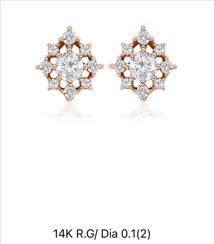 스톤헨지 14K 로즈골드 천연 다이아귀걸이 메인 1부 다이아몬드 주변으로 멜리다이아몬드가 섬세하게 세팅 박스와 보증서 모두 포함 반품불가