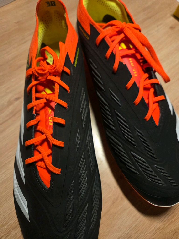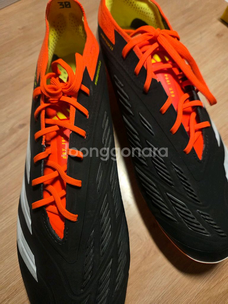 275 사이즈 축구화예요. 오렌지와 블랙 컬러 조합이 멋스럽고 상태도 양호합니다. 실내 경기용으로 딱 좋아요! 딱 5분 신었습니다 카포 스토어 쌕 있습니다