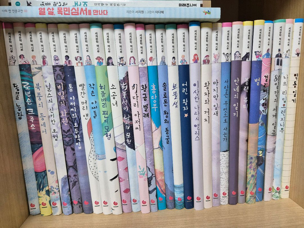 집에 책이 너무 많아서 구입하고 한 번정도만 읽은 것 같아요~외동아이고 한 번정도 읽어 새 책처럼 깨끗합니다.다만 한 권이 학교에서 읽고 가져오는 과정에서 물병에서 물(생수)이 새는 바람에 책 표지랑 밑부분이 좀 쭈굴해지기는 했지만 안은 깨끗하더라구요~전권 50권 다 있습니다. 강동구 명일동 부근 이0 오오일오 7이4