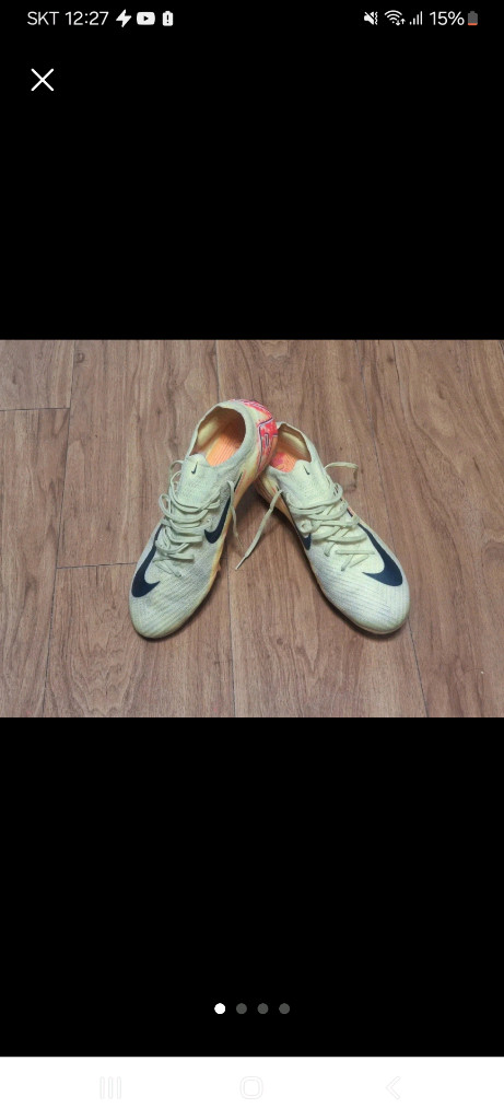 머큐리얼 베이퍼16 fg 285 음바페 에디션 상당히 이쁩니다 쌕은 이사오면서 없어져서 뽕은 인조잔디에서 신기 높아서 컷팅해서 신고있습니다 실착 8회입니다 상태 좋습니다 연락주세요