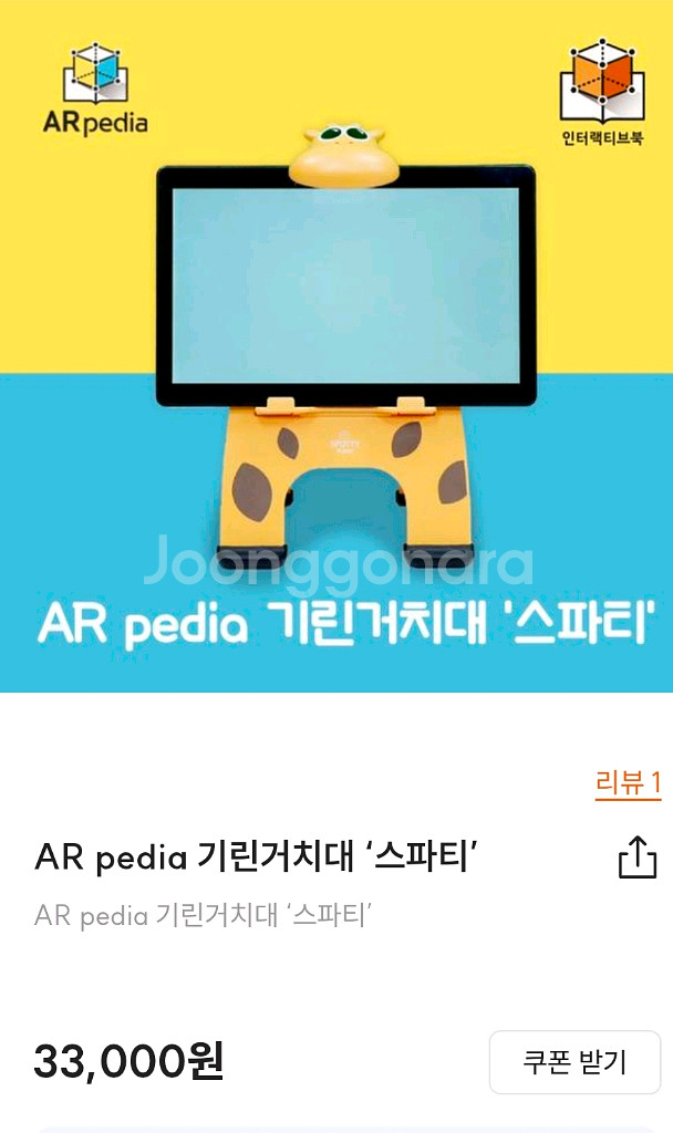 AR pedia 기린거치대 스파티 새제품입니다 - 귀여운 기린 캐릭터 '스파티' 디자인으로 아이들이 좋아해요 - 약 100도까지 조절 가능하여 다양한 도서들을 빠르고 정확하게 인식합니다 - 18.5cm 이내의 북패드와 전면 카메라가 있는 북패드 모두 호환 가능해요 - 접었다 폈다 가능한 받침대로 북패드를 안전하게 고정할 수 있습니다 - 제품 무게는 248g으로 가볍고, 가로 150mm, 세로 50~115mm, 높이 306~340mm로 아이들이 사용하기 적당한 크기입니다 - ABS+PC, SUS304, TPE, PMMA 재질로 만들어졌습니다 미개봉 새제품으로 박스 그대로 보내드립니다 아이들이 좋아하는 귀엽고 앙증맞은 기린캐릭터 '스파티'로 재미있게 인터랙티브북을 학습할수있는 거치대입니다. 정품 33,000원짜리 택배상자도 뜯지않은 새상품입니다. 👉반값택배및 선불 택배가능합니다.