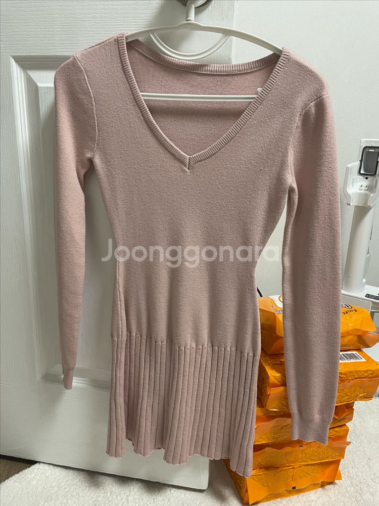 kindame 브랜드의 핑크색 V넥 골지 니트 원피스입니다 전체적으로 깨끗하고 좋은 상태를 유지하고 있어요 비스코스 50%, 나일론 22%, 폴리에스터 28% 혼방 소재로 부드러운 착용감을 제공하며, 신축성이 좋아 편안하게 입으실 수 있습니다 프리사이즈(F)로 다양한 체형에 잘 맞아요 정가79.000원입니다 텍만뗀 새옷입니다 착용안했어요