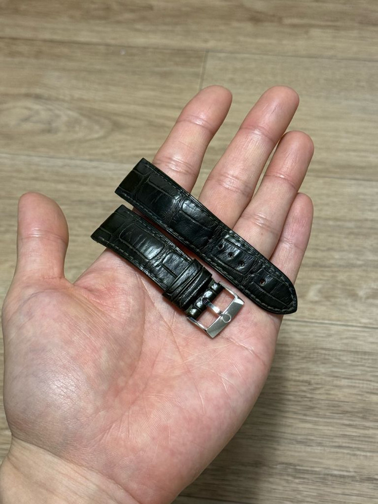 오메가 정품 악어가죽줄, 엘리게이터 스트랩 * 색다크그린 * 러그 20mm * 짧은쪽 길이 약 6.2cm * 긴쪽 길이 약 10cm 정품 핀버클 포함입니다. 가격 69만원 제품이고 약간의 사용감 있으나 20만원에 판매합니다.