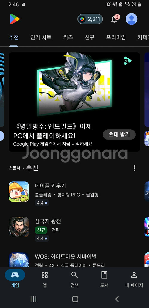 구글플레이포인트 2000점 16000원 급쳐팔아요