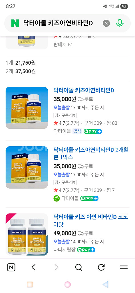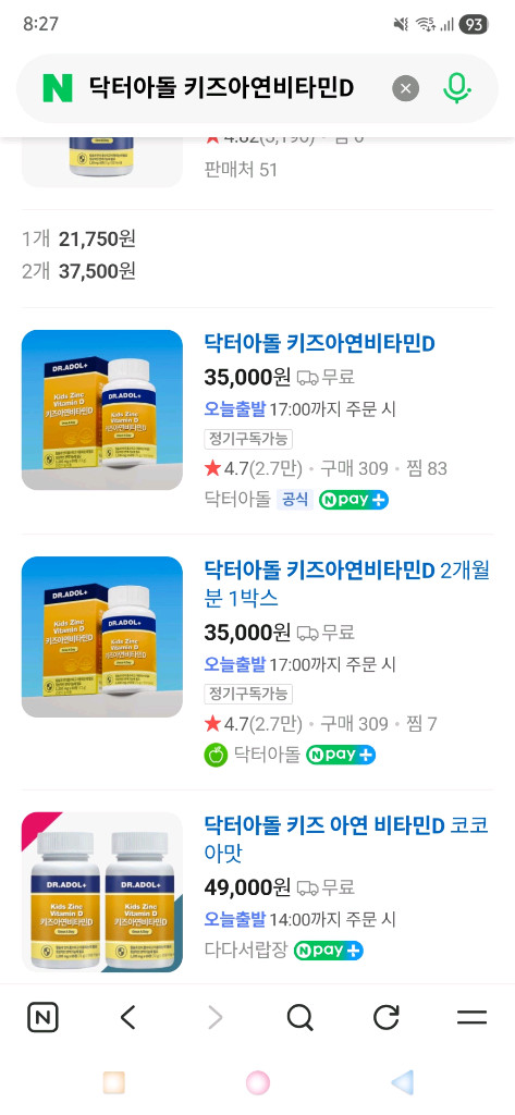 아이들이 먹기 좋은 아연비타민D 2개월분이에요. 박스 상태 양호하고 유통기한26.05.22입니다.