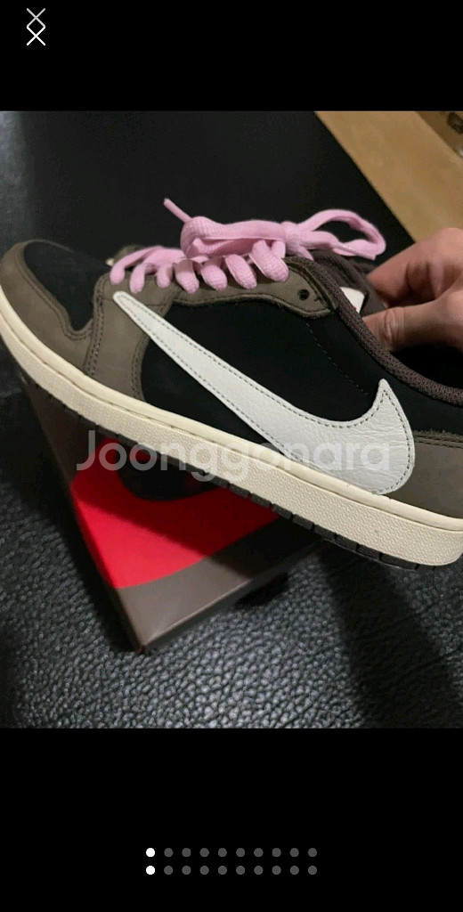 나이키 에어 조던 1 로우 OG SP 트래비스 스캇 모카입니다 상태는 사진 참고해주세요. 박스랑 여분끈 등 구성품 다 있습니다. 크림에서 구매한지는 몇년됐습니다. 최근에 신발/명품 전문으로 수선하는 업체에서 뒷축 ,밑창보강 ,세탁 수선(영수증 사진첨부가능, 15만원) 마치고 밑창 뒷축 사진 보시다시피 횟수로 치면 10회미만 착용했습니다. 특성상 주말+자차만 타고다녀 보강한 밑창이 거의 닳지도 않았습니다. 크림 구매내역서 사진도 보관중입니다.