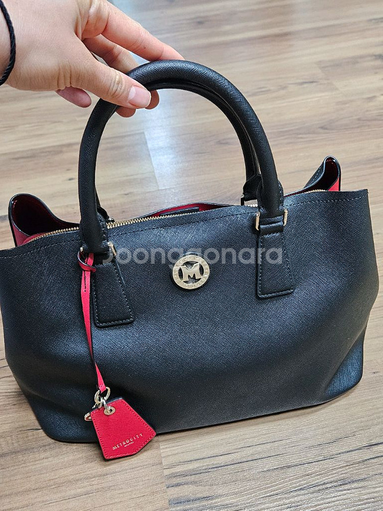 메트로시티 블랙 토트백입니다 내부는 빨간색으로 되어있고, 숄더 스트랩도 포함되어 있습니다. 상태 좋아요. 가로 세로 높이는 38 × 23 × 15센티 입니다 정품입니다! (정품 인증서 있어욥) 택배비는 제가 부담해서 보내드릴게요 안심거래 환영입니다~!