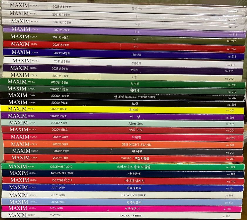 표지 사진 필요하시면 보내드려요 2013년 1월 2014년 2월 2015년 2월 2016년 1월 2016년 12월 2017년 6월, 7월, 8월, 9월, 10월, 11월, 12월 2018년 1월 ~ 12월 2018년 1월, 2월, 3월, 6월, 11월 (표지 다름) 2019년 1월, 2월, 5월, 6월, 7월, 10월, 11월, 12월 2019년 5월, 7월, 12월 (표지 다름) 2020년 1월 ~ 12월 2021년 1월 ~ 7월, 9월 ~ 12월 2021년 6월 (표지다름) - 판매완료 2023년 11월 2023년 12월 2024년 1월, 3월 ~ 12월 2025년 1월, 2월 세월의 흔적은 좀 있어요 일괄판매 16만, 택배 착불 배송 (낱권판매 안해요) 표지 사진 추가 필요하시면 보내드립니다