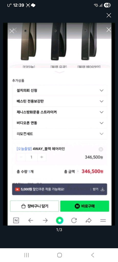 개인정보(거래정보)를 주고받는 행위는 사기에 노출될 수 있으므로 즉시 중고나라로 신고해 주세요베스틴 IDL-300 도어락입니다 새 상품이고요, 정가는 346,500원이에요 터치스크린, 카드키, 비밀번호, 지문, 티타늄 색상입니다