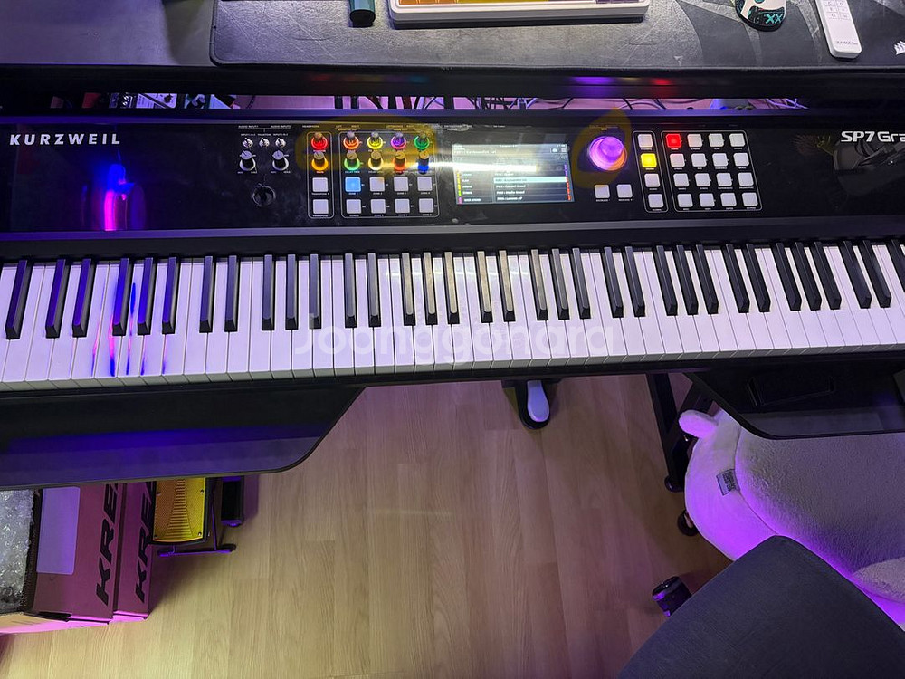 커즈와일 SP7 그랜드 팝니다. 본품, 전원케이블, 서스테인페달 있어요. 피아노 스탠드까지 같이 드립니다. 사진에 동그라미 친 부분 노브 5개 이사중에 없어져서 다른걸로 껴져있고 메인노브는 위 까만 껍데기부분이 깨져서 없는 상태인데 밑에 하얀부분은 멀쩡해서 사용하시는데에는 아무 문제 없습니다! 그 외에 사용적인 부분이나 이런건 아무런 문제없어요. 무게때문에 직거래만 받겠습니다. 서울 하계동입니다.