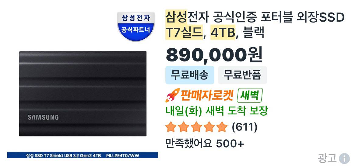 t7 쉴드 ssd 4tb