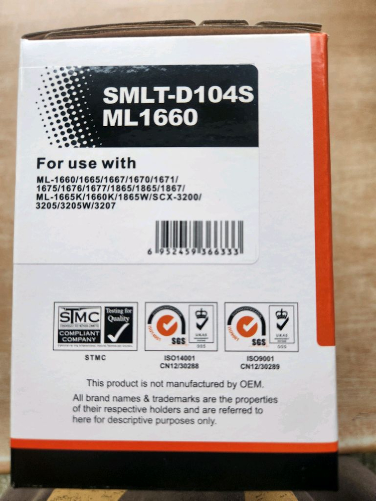 삼성 MLT-D104S 재생토너 새제품입니다 ML-1660, ML-1665, ML-1670, ML-1671, ML-1675, ML-1676, ML-1677, ML-1865, ML-1867, ML-1865K, ML-1860K, ML-1865W, SCX-3200, SCX-3205, SCX-3205W, SCX-3207 등 다양한 삼성 프린터 모델과 호환 가능합니다