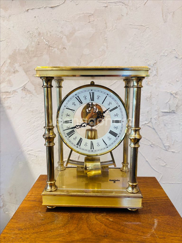 독일 Baldwin 일렉트로마그네틱 탁상시계입니다. 무브먼트는 Kundo 무브먼트입니다 kundo(Kieninger & Obergfell )는 1918년 설립된 독일의 유명한 시계제조회사입니다 일렉트로마그네틱시계는 전통적인 태엽 대신 전기적 펄스와 자력으로 진자를 구동하는 방식입니다 케이스는 황동 소재이고 아크릴케이스입니다 아주 묵직합니다 상태는 글라스에 약간의 얼룩과 황동 파티나 있습니다 시계 특성상 파손의 우려가 있으므로 직거래로만 거래하겠습니다 무보정 사진이므로 상세 사진을 확인바랍니다. made in germany Size : 22cm (높이) 16cm (가로) Color : 황동 - 모든 시계는 제가 직접 깨끗이 청소하고, 24시간 이상 동작 확인 및 기본적인 정비를 하여 이상이 없는 제품만을 판매합니다. - 빈티지 제품은 특성상 사용감, 스크래치 등이 존재하며 이러한 경우 사진과 함께 최대한 자세히 설명을 하도록 노력하고 있습니다. - 새상품이 아니므로 초기 불량 이외에는 A/S, 교환, 환불이 어려우니 궁금한 점은 문의주시고 구매바랍니다. - 매장 방문하셔서 구입가능합니다 (서울 광진구 광장로75-1, 1층 유로빈티지)