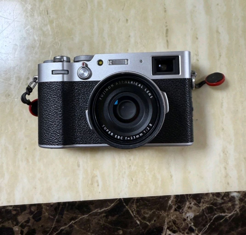 후지필름 x100v 실버 판매합니다. 하단부는 보호필름 부착중이며 화면에도 보호필름 부착중입니다. 추가로 겐코air필터 달려있습니다. 풀박스입니다. 구성품 x100v 본체 배터리2개 정품 배터리충전기 정품 가죽케이스 정품 가죽 스트랩 정품 사각후드 겐코필터 카메라 셔터버튼 2개 구매하시는분께 픽디자인 스트랩 또한 드립니다. 네고는 정중히 사양합니다. 110만