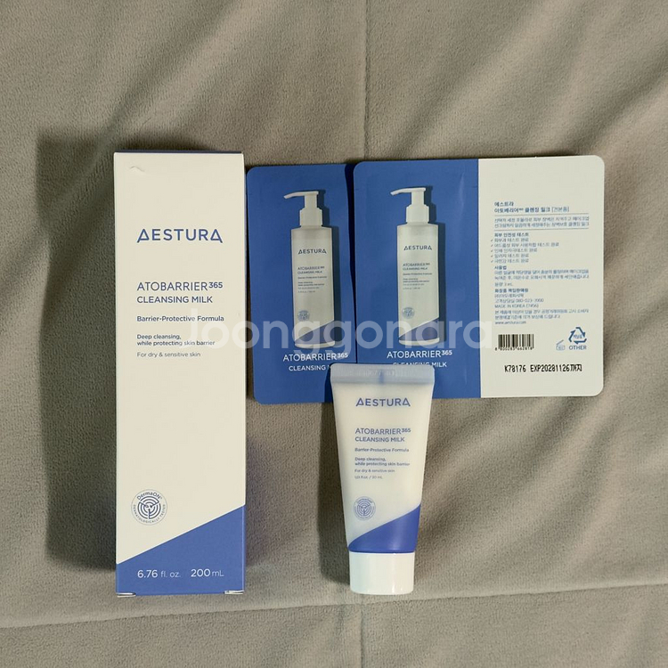 이번에 출시한 에스트라 아토베리어365 클렌징 밀크 입니다 200ml + 30ml + 샘플 2개 25/12