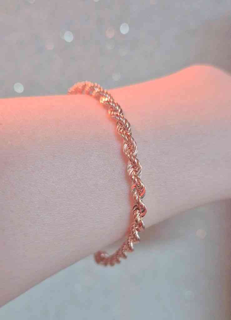 14k핑크골드 할로우 로프팔찌예요 세공 너무이쁘고 중량3.5g 에할로우라 보시는데로 볼륨감 너무좋고 반짝임 너무 좋아요 단독착용해도 눈에 확들어오고 레이어드해도 이뻐요 찌름문의는 차단합니다 금제품으로 교환 반품 환불 안되요