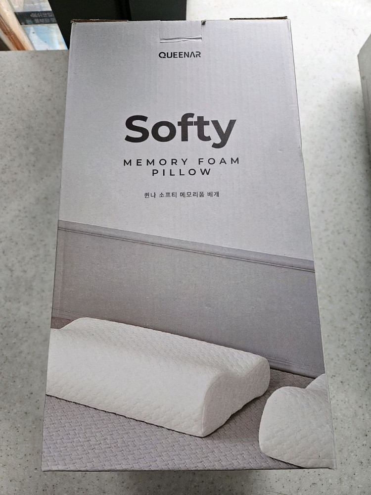 새상품 소프티 메모리폼 베개예요!. 박스 포장 그대로 미개봉 상태로 깨끗합니다. 목과 어깨를 편안하게 받쳐주는 인체공학적 디자인이고 낮은베게에 포근한 질감의 베개 입니다. 무료배송