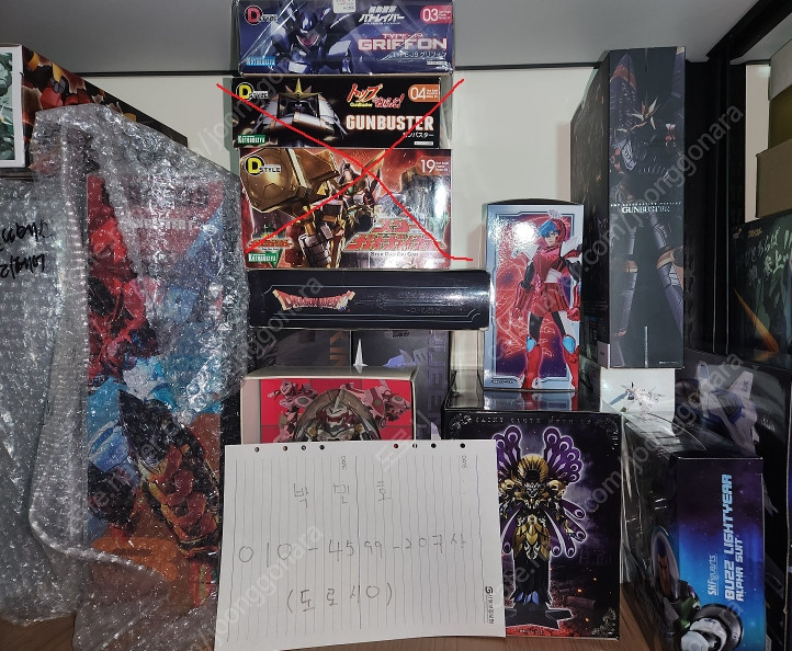 거의 모든 제품들 미개봉 or 카툰박스가 대부분 입니다. 그냥 찔러보거나, 막무가내 네고 문의는 답 안합니다.^^ 고가 제품들이니 직거래 가능합니다. (직거래 위치는 제일 하단 설명 확인) =========================================== <SD 타입> MC SD 하이뉴 건담 - 7만원 (미개봉) D-스타일 그리폰 - 5만원(미개봉) 모데로이드 그렌라간 - 5만원(미개봉) 베리어블 액션 하이스팩 킹스카샤(개봉 미전시품) - 20만원 =========================================== 배리어블 액션 하이스펙 뉴아스라다 AKF-0/G 사이버 포뮬러 - 55만원(미개봉) =========================================== <세인트 세이야> 성투사 스카이크로스 쇼 리바이벌 - 8만원 (미개봉) 휴프노스 EX- 18만원(미개봉) 성투사성의 크라운 성의 시리즈 사지타리우스 세이야 - 25만원(미개봉) =========================================== 드래곤퀘스트 전설의 갑옷 시리즈 로토갑옷 액션 피규어 (개봉 미전시품) - 20만원 =========================================== 스트롱거 페그오 키리에트 마슈 1/7스케일 - 18만(미개봉) ====================================================== 팝마트 몰리 할리퀸+ 원더우먼 세트 - 일괄판매 15만원 (개봉 확인품) ====================================================== 메가하우스 배리어블액션 카이젤화이어 - 개봉 확인품 / 250,000 ====================================================== 평일 낮시간 - 경기도 일산 성저마을6단지 앞 직거래 가능 (10시~ 오후 5시) ※※ 일부 제품은 경기도 성남쪽에서만 직거래 가능 ※※ ※ 여러개 구입시 금액 절충 최대한 해보겠습니다 ※ ※ 택배비 별도 입니다. (우체국 발송) ※ 중고나라 or 네이버 채팅은 거의 안합니다. 문자 주세요~~ 제품 가격대가 있는편이라 직거래 시간잡고 가능합니다. 급하게 파는게 아니라서 불필요한 네고는 답장 안합니다.