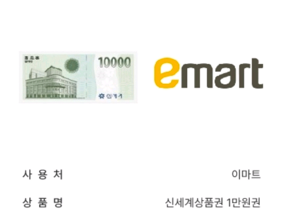개인정보(거래정보)를 주고받는 행위는 사기에 노출될 수 있으므로 즉시 중고나라로 신고해 주세요이마트 상품권 1만원 교환권 팝니다. 이마트 키오스크에서 교환 판매가격 9600원 교환권 유효기간 2월20일까지 문의사항은 채팅주세요