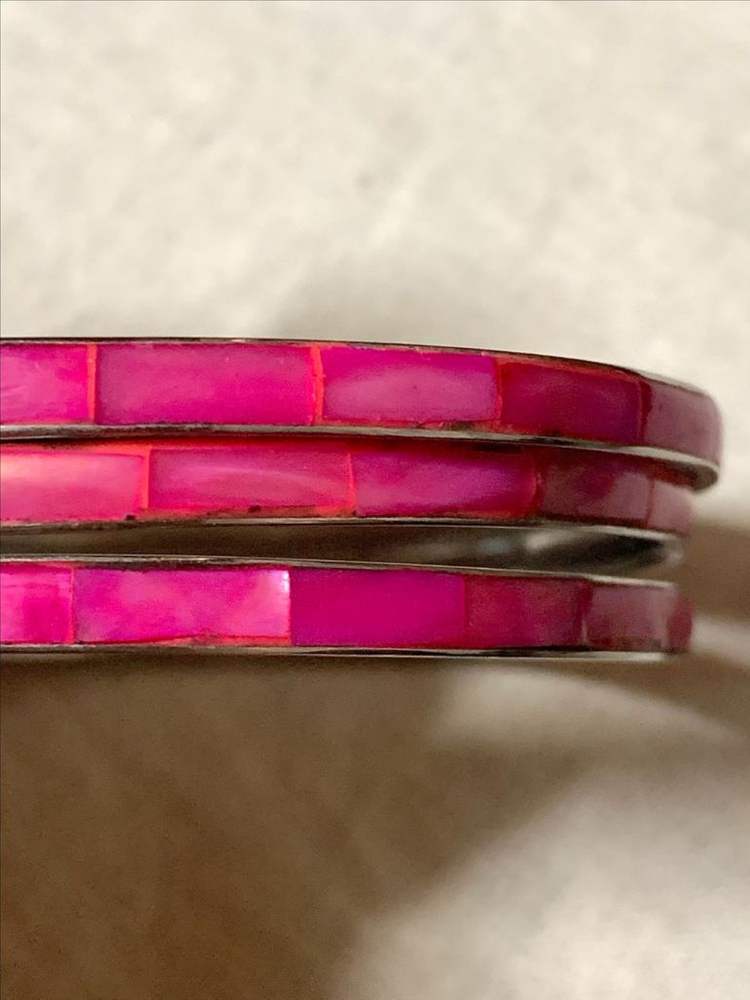👑구입 후 보관만 하다가 판매하는 제품 👑 쨍한 핫핑크 자개 뱅글입니다. 컨디션은 자연스런 세월 사용감 느껴집니다. 내부 지름 사이즈 6.5cm 📌 빈티지 특성상 사용감, 오랜 세월의 흔적이 있을 수 있습니다. 눈에 띄는 하자 부분은 확인하여 사진으로 오염의 정도를 보여드리오나 미처 발견하지 못하는 사소한 흠집이 있을 수 있다는 점 양해 부탁드립니다. 빈티지에 대한 이해도가 있으신 분들께 추천드립니다. ✔️에눌X 환불X ✔️ 택배는 우체국으로만 보내니 반값택배 문의하지 마세요 배송은 일주일에 두 번(화요일, 목요일)진행합니다. (개인적인 스케줄상 제 기준 방침이오니 해당사항에 동의하시는 분들만 주문 주세요.)
