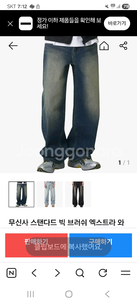 반품시기놓친 새상품 무신사 스탠다드 빅 브러쉬 엑스트라 와이드 데님 팬츠 러스티 블루 색상입니다 모델명은 MMDNP122-UL이며, 판매가는 56,900원입니다 사진에서 보시는 것처럼 사용감이 적고 깨끗한 상태입니다 넉넉한 와이드 핏으로 편안하게 착용하기 좋고, 러스티 블루 색상이 빈티지한 매력을 더해줍니다 다양한 상의와 매치하기 좋은 데일리 아이템으로 추천드려요 택배(gs편의점일반4천원,gs반값2천원)