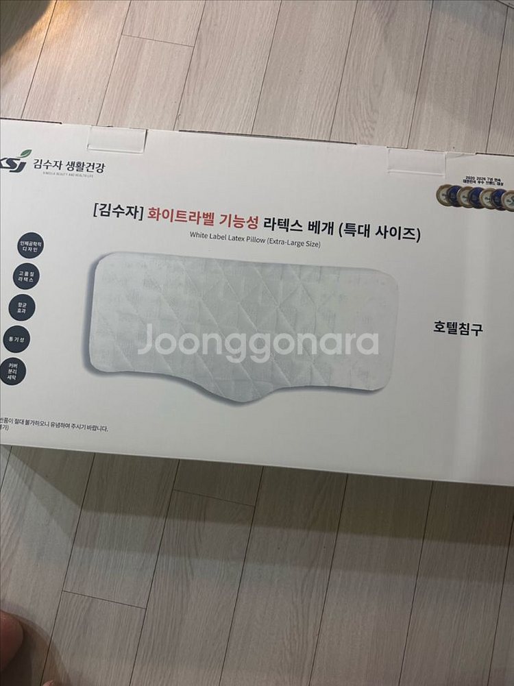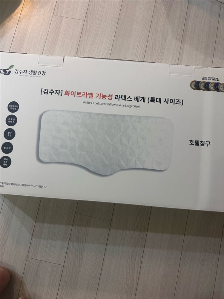 기능성 라텍스 베개 특대 사이즈예요. 박스 포장 상태로 새 제품 같아 보이고, 목과 어깨를 편안하게 받쳐주는 기능성 베개입니다. 최상급 화이트라벨입니다 인터넷 최저가보다 많이 할인된 특가로 선물하세요 2개있어요