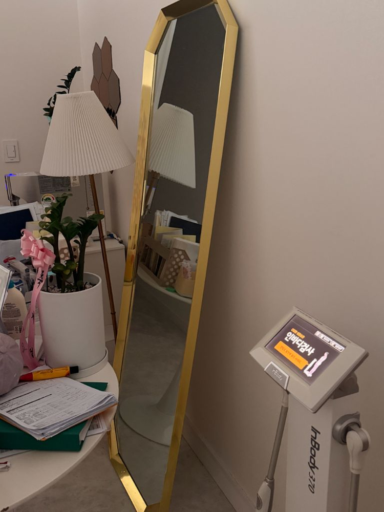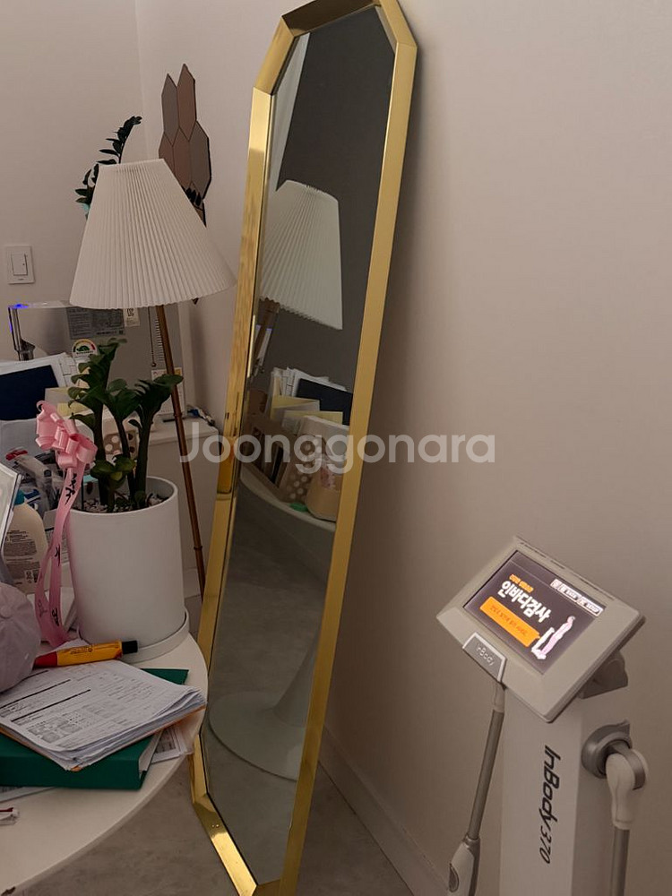 깔끔한 골드 프레임의 대형 전신거울이에요. 상태 양호하고 거울도 선명해서 실용적으로 사용하기 좋습니다. 인테리어 포인트로도 예쁘답니다! 옷가게 /운동센터/ 등 포토존이있는 어디든 활용가능! 육각형 모양 2개 , 사각형모양 2개보유 일괄구매시 네고가능