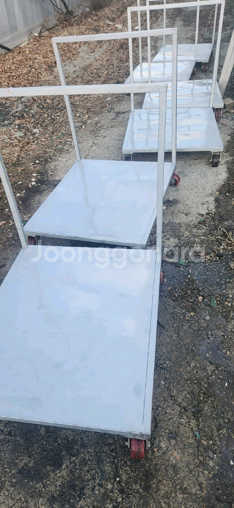스텐대차 구루마 이동식대차 입니다 무게는 30킬로 사이즈는 가로 103센티 세로 86센티 입니다 총 6개 있습니다 개당 17만원입니다(배송비 별도) 경기도광주