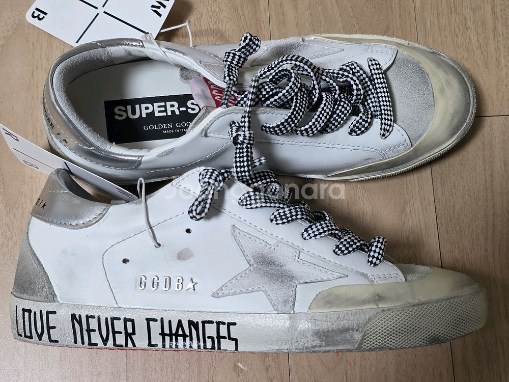 골든구스 슈퍼스타 스니커즈 화이트/실버 색상이고, 바닥은 밝은 레드/블루로 화사한 느낌을 줍니다. 사이즈는 36으로 230~235mm에 해당하고 박스와 정품보증서, 더스트백이 포함되어 있습니다. 스타일 좋은 제품만 취급하는 워드로브(WDRB)에서 구매했습니다. 나중에 신으려고 아껴뒀던 모델인데 사용중인 신발이 많아서 판매합니다. 귀여운 스타일이여서 데일리 슈즈로 활용하기 좋습니다.