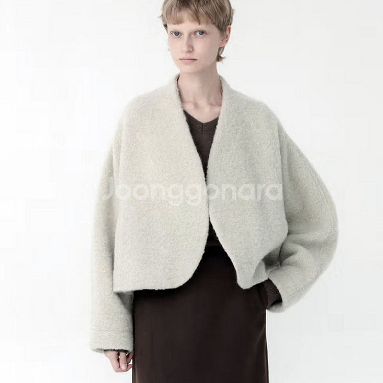 레이스(RRACE) 알파카 커브드 숏자켓 프리사이즈 새상품 반품 64 기장 55 라이트그레이칼라에 알파카 커브드 숏자켓입니다 세미크롭기장에 오픈형 자켓이며 부클 텍스처의 알파카 울 혼방 소재입니다 포켓있고 40만 초반대 제품입니다 가격은 27만원입니다 반품불가/착불