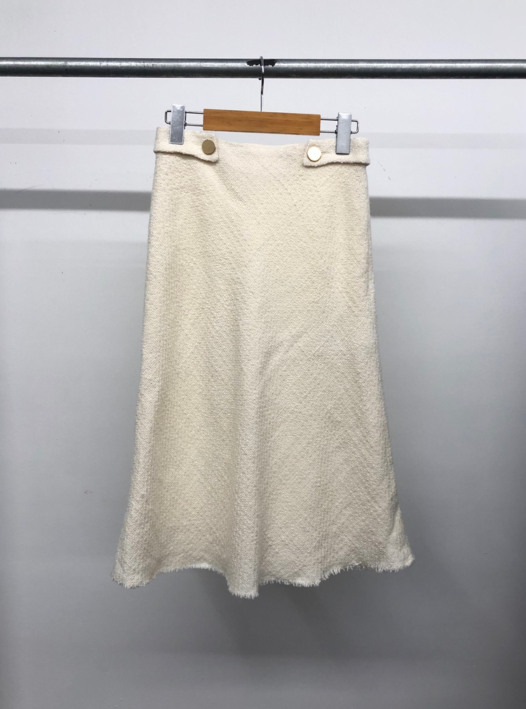 프랑스브랜드 끌로디피에로 제품으로 아이보리컬러 트위드 금장 버튼 포인트 스커트입니다. 컨디션 하자없이 우수합니다. 허리 33 총장 70 cm * 배송비 포함 가격 (제주/산간 추가비용 있음) * 반품 불가하니 실측 참고하여 구매해주세요.