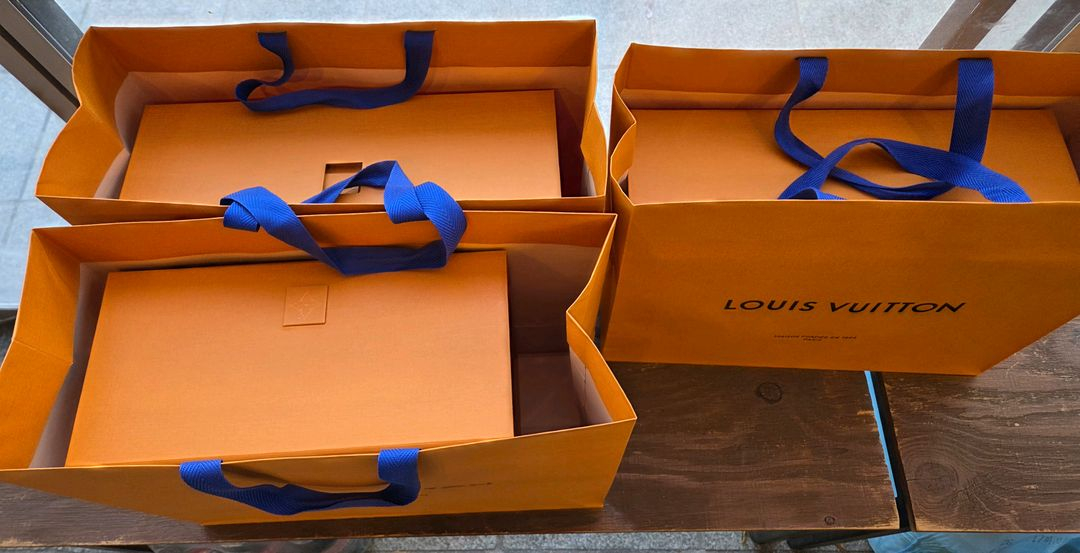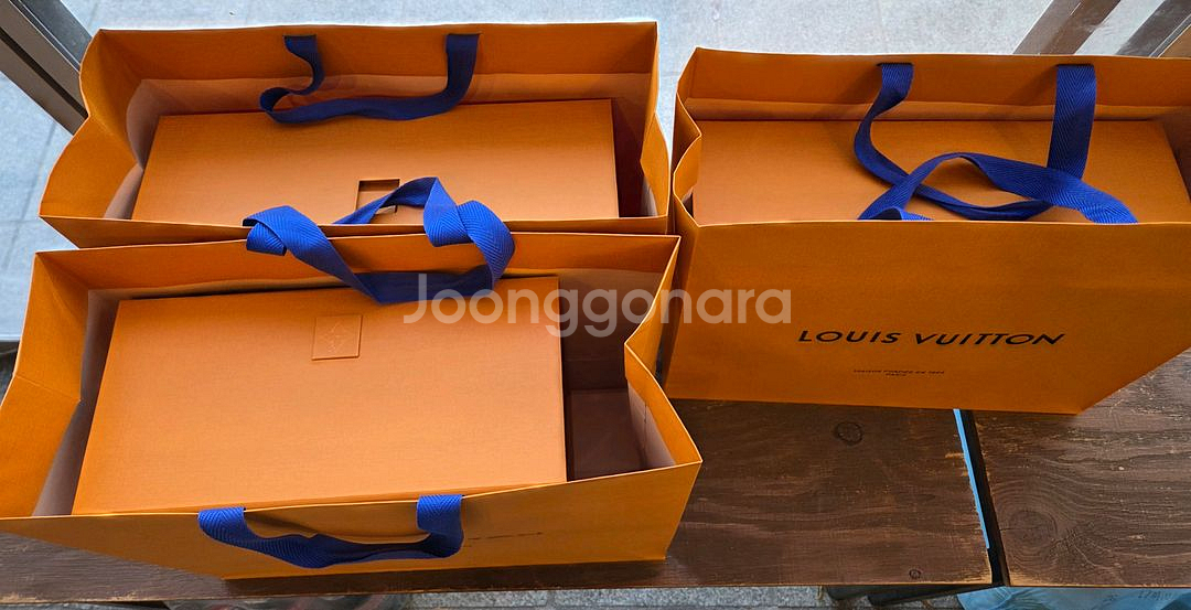 루이비통 3세트 정품 명품 브랜드 쇼핑백들이에요. 오렌지색 바탕에 블루 손잡이로 고급스럽고, 새 제품 상태로 깨끗해요. 선물용이나 개인 소장용으로 좋을 것 같아요! 각25000 일괄6만원요^^