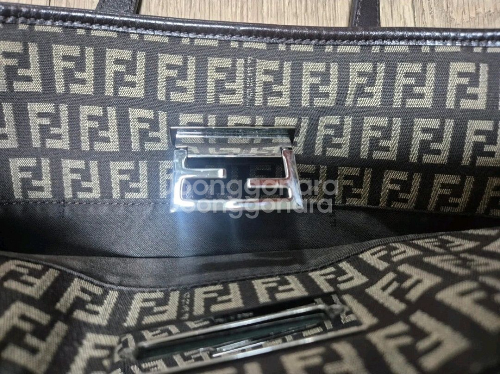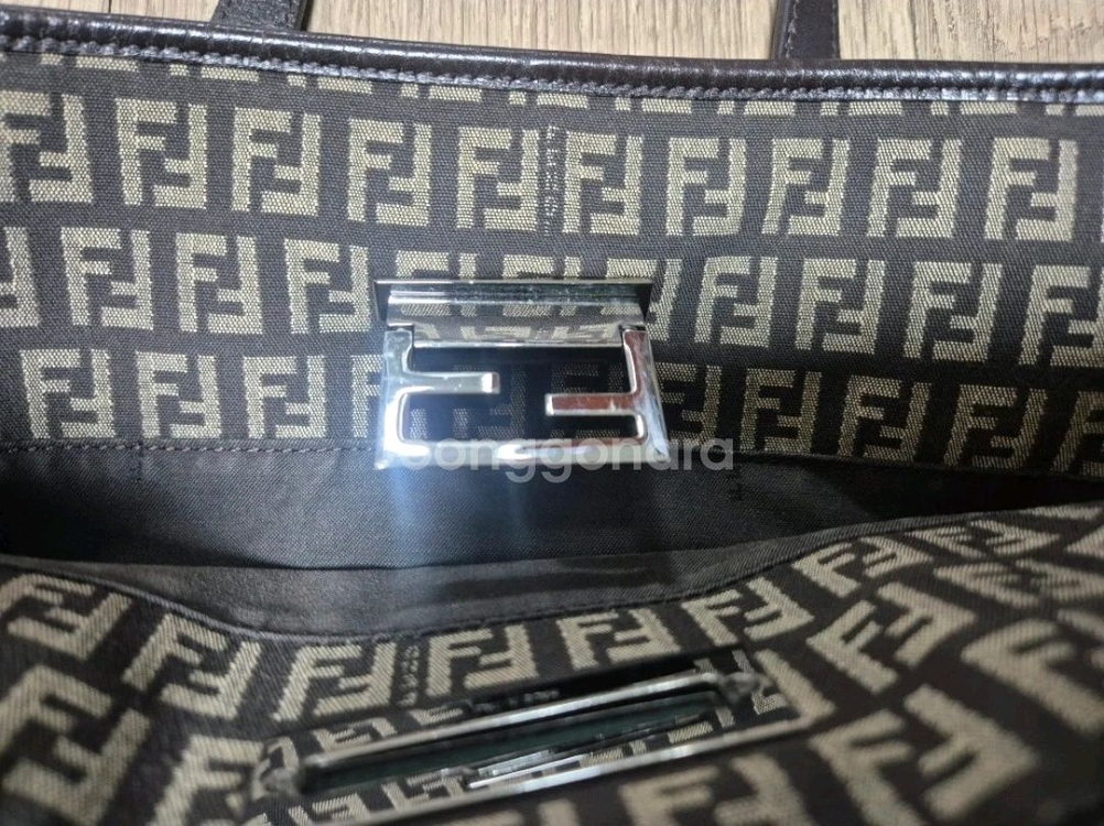 시그니처 FF 로고 패턴의 블랙 컬러 토트백이에요. 내부도 깔끔하고 전체적으로 상태 양호합니다. 클래식한 디자인으로 오래 사용하기 좋아요.