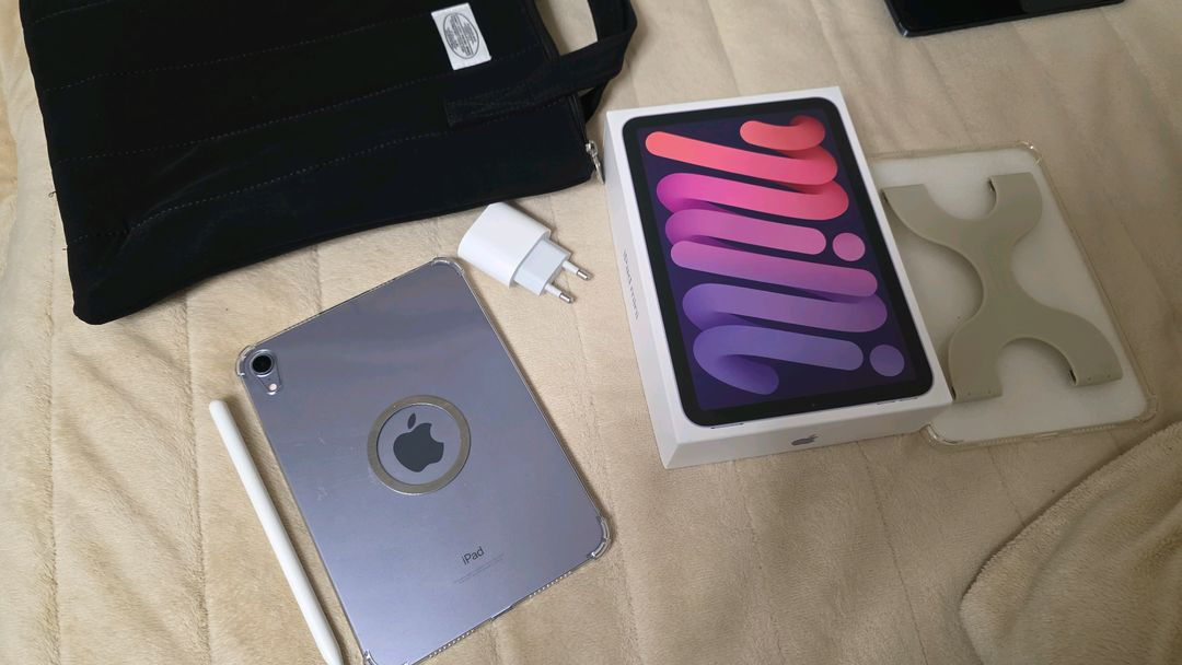 아이패드 미니 6세대 WiFi 모델 퍼플 색상입니다. 현재 배터리효율 99%로 나옵니다. 액정은 강화필름으로 교체했습니다. 상태는 사진과 같이 깨끗합니다. 애플펜슬 2세대 포함입니다.