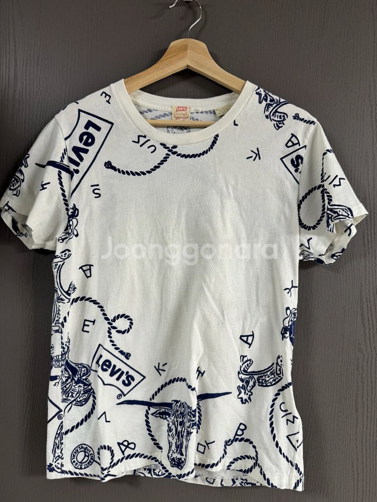 남성)리바이스 흰색티 S, 90사이즈_ 리바이스모음 흰색 바탕에 네이비 색상 패턴이 들어가 있어요. 어께44 총기장60